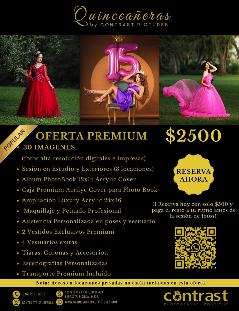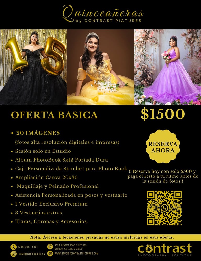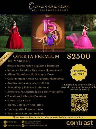 ¡El equipo de Contrast Pictures superó mis expectativas en la sesión de fotos de mi quinceañera! Fueron amables, creativos y capturaron momentos que atesoraré para siempre.