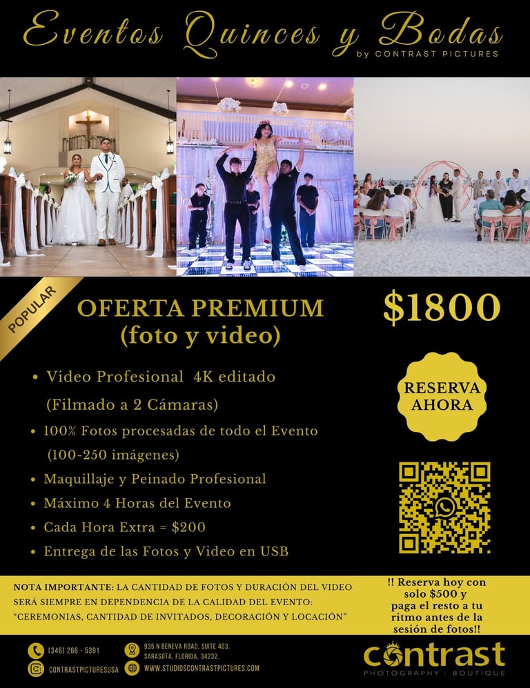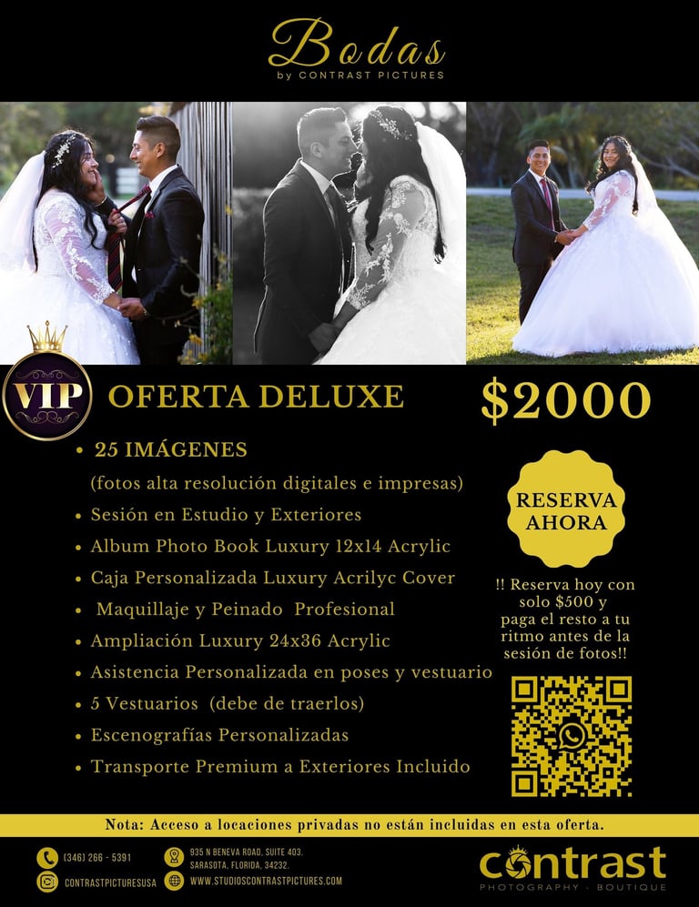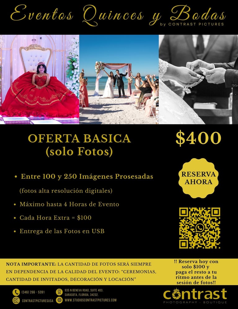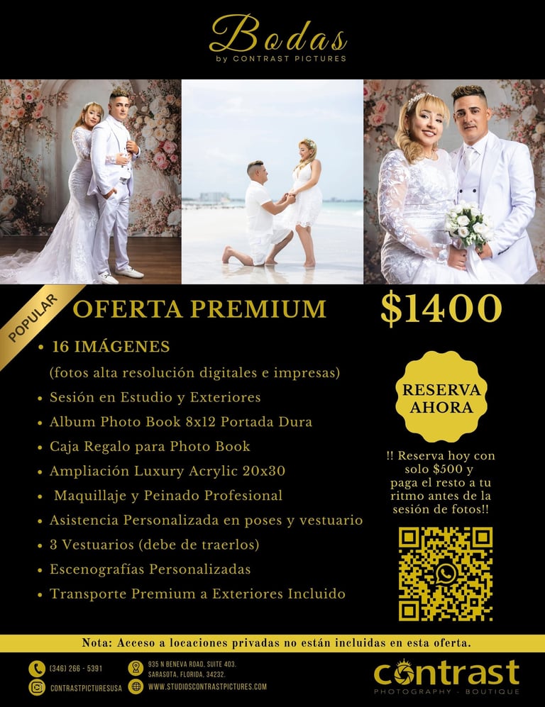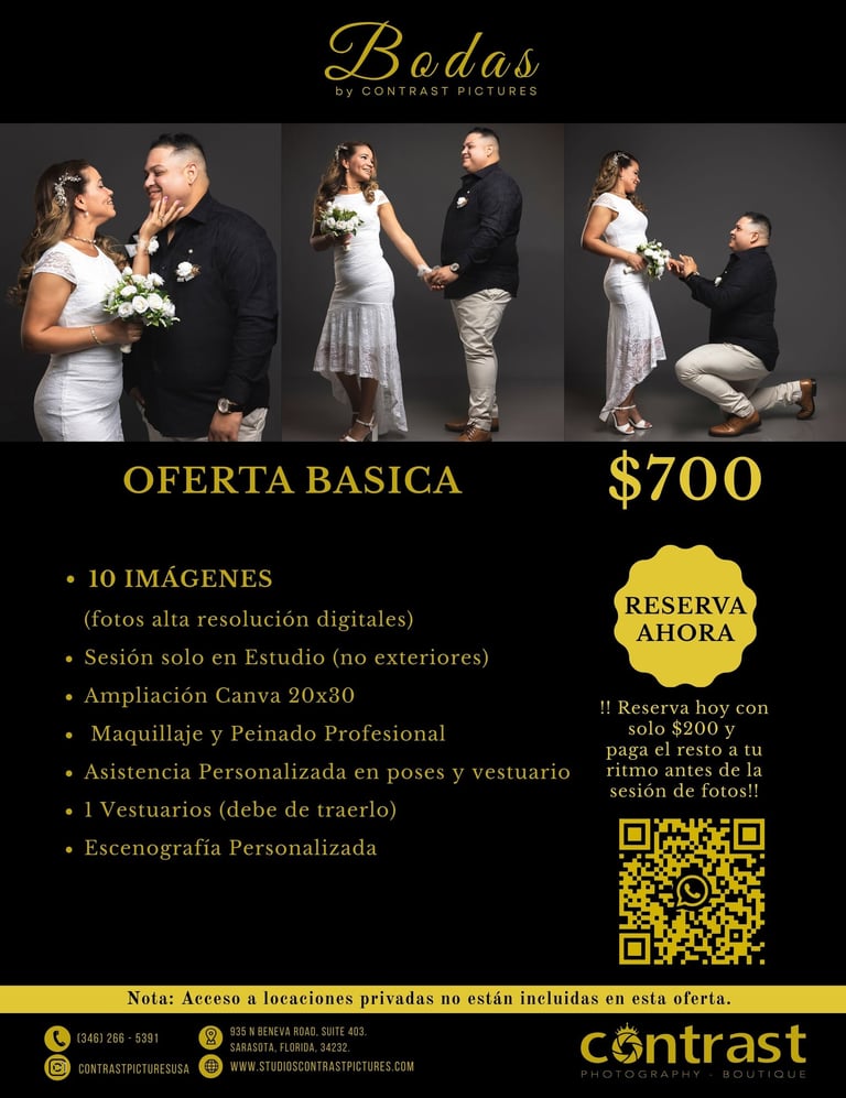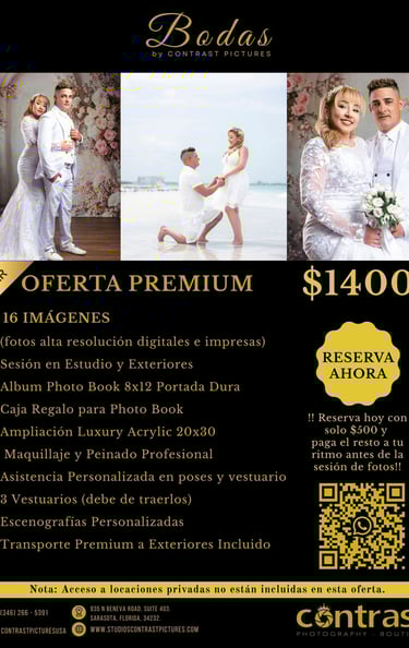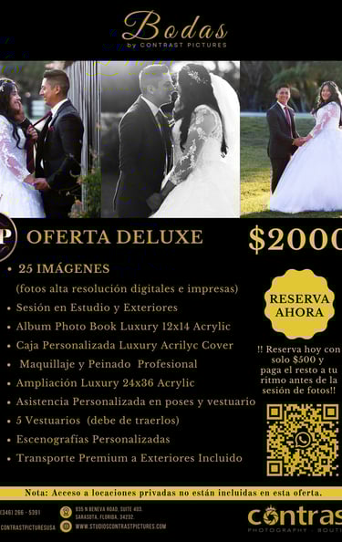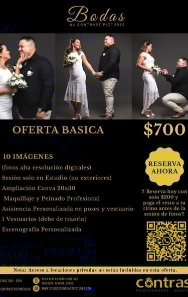 ¡Contrast Pictures hizo un trabajo increíble en nuestra sesión de fotos de bodas! Capturaron cada momento especial de una manera hermosa y profesional. ¡Altamente recomendado!